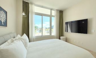 The fully equipped kitchen comes with all the essentials: silverware, dinnerware, and modern appliances such as a dishwasher, toaster, microwave, stove, and oven. Guests can enjoy the comfort of a well-appointed living room, a dedicated dining area, and a private balcony offering stunning views.
