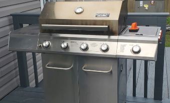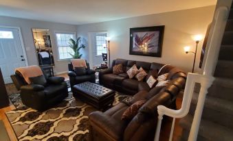 The basement has been newly finished with a queen sofa bed, a 50 inch tv, an in-wall electric fireplace, foosball table and lounge chairs. Its a cozy space great for the teens (or dads) to find retreat.