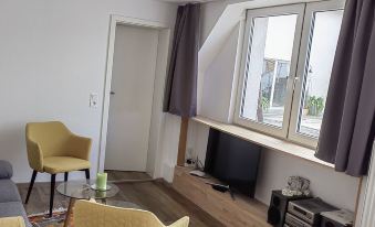 Ein sehr sauberes und gepflegtes Appartement, liebevoll eingerichtet. Die Küche ist gemütlich und hat alles , was man zur Verpflegung braucht.Rewe und Discounter in 5 min mit Auto zu erreichen. Parkmöglichkeit im Hof.