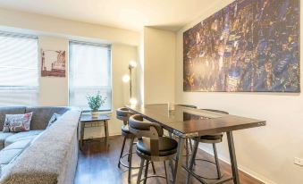 Northwestern Alumni, Parents, Corporate Travelers, and Evanston Adventure Seekers!! This property is all about coming together. Besides the fact the location is only half a mile from downtown Evanston, 1 mile to Lake Michigan Beach front, half a mile to the CTA/Metra, and a 15 minute train ride into the Windy City, this apartment has it all. Everything in this apartment is brand new, and ready to be broken in. Ridiculous amount of amenities, with smart home devices. Efficient and spacious 985 sqft 2 bedroom/1 bathroom condo is located in the heart of downtown Evanston Restaurants, cafes and shopping is no more than 0.5 miles. And if your in town to see your kiddo graduate from NU, you can ditch the car for a 10 minute walk. Both room are identical in size, but the master has a Queen, and the spare bedroom has a full size bed with sofa pull out. The living room sofa sectional is a 2 bed Euro sytle pull out. Also if you want to check out the melting pot of Chicago, take a train, and you'll be there in 15 minutes. High Speed Internet with Disney + and Netflix at your fingertips. North shore, chicago, chicago northshore, evanston, rogers park, wilmette, winnetka, northwestern, nu, northwestern students, northwestern alumni, Kellogg, evanston hotel alternative, chicago north side, lake michigan, furnished apartment, evanston furnished rentalAbout pets:No pets allowed.About checkOut:Check out before 11:00 AM.About children:Children allowed: ages 3-17.About customRules:Doorbell Camera monitoring front door.NO SMOKING, Guests who smoke will be fine: $250.00,PET Violation Fee: $300.00.About checkIn:Check in after 4:00 PM.About smoking:Smoking is not permitted.Smoking violation $250.About minBookingAge:Minimum age to rent: 25.About events:No events allowed.ABSOLUTELY NO PARTIES!!.