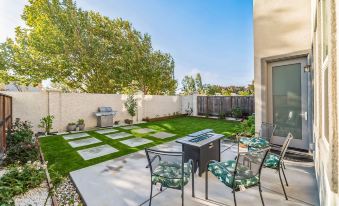 Outside, you'll discover a lovely garden and patio with a fire pit, perfect for sipping your morning coffee or enjoying an evening by the fire as you soak in the beautiful California weather. The garden is meticulously landscaped with a variety of flora that adds to the charm of the outdoor space. The fire pit is a wonderful spot to gather with friends and family, roasting marshmallows, sharing stories, and creating lasting memories.