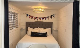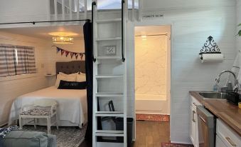 This property is a gem! Beautifully finished and they've thought to put everything you need in the space. Fantastic location--quiet neighborhood yet only a block away from the coffee/shops/restaurants of the downtown area.I stayed here with my 6'7" son, yet it didn't feel at all cramped. It has a spacious bathroom and plenty of room to socialize for a small family.I will absolutely stay here for my next visit to Fairhope!