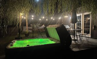 we just stayed here this past weekend for a baseball tournament. We had some family coming in from Ohio so we decided to do a house instead of normally staying at a hotel. The inside of this house is super cute and it's perfect for a group of probably 5 to 6 people. There's even a patio with a hot tub a table outback hammock. It's in a nice neighborhood close to downtown fishers.