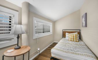 Please note that this 2-story home requires 6 steps for entry and an interior staircase to access the bedrooms on the second floor. Additionally, there is no air conditioning, but the large windows and provided fans keep the home cool.