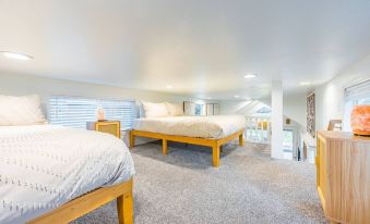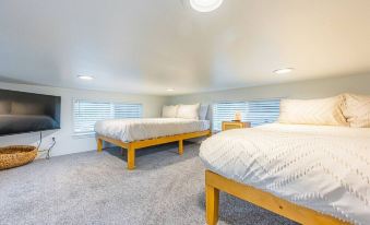 Upstairs in the spacious loft area, two plush full size beds await, offering a peaceful haven for a restful night's sleep. Downstairs, a cozy bedroom features a full-size bed, perfect for additional guests or family members seeking their own private space.