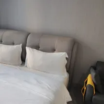 Antwort der Unterkunft: 您好,我們的床上用品都是用高密貢緞面料,全絲光工藝處理的,面料柔軟,透氣性能好。如果空調調試問題和衞生間出水問題可以隨時聯繫我們前台,一定會第一時間去幫您解決的。來到我們小店休息,希望大家放鬆心態好好的享受生活。服務我們一定會做好的,做得不好的我們會第一時間去修正。謝謝您的支持和理解