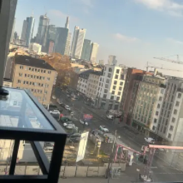 Wunderschöner Ausblick und Tolle Lage! Direkt im Bankenviertel nebenan viele Cafés und Einkaufszentrum. Den Maintower erreicht man zu Fuß und nur 10 Minuten vom Bahnhof. Saubere Zimmer.