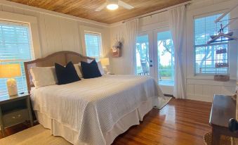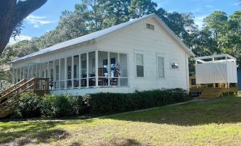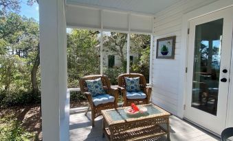 We found the perfect laid-back beach retreat. The house is beautifully renovated with attention to detail in both style and functionality. Nothing beats walking out of the back door directly onto the white sand beach. The two couples each enjoyed private en-suite comfy bedrooms/baths both with French doors facing the water, separated by the living and kitchen areas. The dining area leads to a space with bunk beds. The kitchen is like your own , well-appointed for cooking with plenty of seasonings, pots and pans, plus toaster, blender, etc. The back porch was our sanctuary and hang out place where you were mesmerized by the water while listening to the gentle waves and birds. One morning we spotted a pod of dolphins just off the shoreline. Great local ambiance and restaurants minutes away. We did not use the grill in its own dedicated space but plan to when we come back next year!