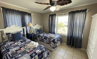 B Happy is a nicely furnished one level beachfront home located on the west end of the island. It sleeps 8 people comfortably. There are two beachfront king bedrooms, one queen bedroom and two twin beds. The split floor plan makes this house perfect for two couples or small families to enjoy together! Each end of the house has two bedrooms and one bathroom. All bedrooms are equipped with a flat screen TV, and plenty of extra blankets and pillows.