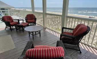 B”Happy is an excellent beach front house with everything you would want or need. Highlights include the partially cover deck with very comfortable furniture, great location and plenty of room for eight. While the couch was great, we spent most of our time on the deck looking at the ocean. The beds were very comfortable and each room had a ceiling fan. The only issue we had was we had to cut our stay short due the the hurricane
