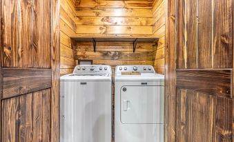 Hillbilly Paradise offers free starters for guests upon arrival that should last your first few days. You will see that the coffee station offers Folgers coffee packs, Keurig cups, sugar, cups with lids, delicious coffee syrups, and creamer. The cabin will come furnished with dishwasher pods, toilet paper, paper towels, laundry detergent pods for the washer, dryer sheets, as well as shampoo, conditioner, soap, and body wash in each bathroom.