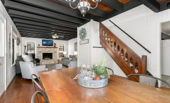 Light, bright and cozy! Describes this large family home! Come see the added touches as we slowly update this sweet house. Wonderful location near the west end of Main Street and yet tucked away in your own oasis. This is a perfect spot to call home during your travels through and around Fredericksburg! Four large bedrooms, 2 upstairs and 2 down, 3 boasting king beds and one with a double and twin bed, which gives lots of comfortable sleeping space for the whole family or a girls' weekend! After a day scouting the shops, checking out the wineries or visiting the Elephant Preserve, this home is a must for either relaxing in a comfy rocking chair on the front porch, or sipping a glass of wine in the back and playing a game of Bocce Ball!