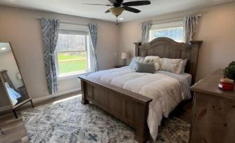 Relax with the whole family at this secluded 33 acre estate on a lake. Featuring 4 bedrooms and 3.5 bathrooms with two full kitchens, one on the main level and the other on the bottom floor. Loft area has small workout essentials. Outdoor fire pit on upper deck with beautiful views of the lake. Many scenic trails to walk and 2 ponds located on property.