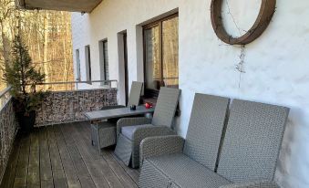 Enjoy through the huge balcony door, from all rooms, from the bed and from the large balcony a unique panoramic view in the Thuringian Forest to the Rennsteig.