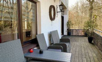 Villa Warzenburg, apartment 2 with panoramic view, balcony and fireplace. Vacation with a dog.