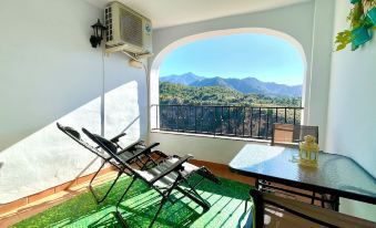 Outside there is a terrace with table and chairs where you can enjoy outside dinning and wonderful views to the mountains and nerja beach's rivers.