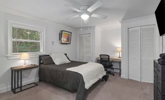 This charming 4-bedroom home offers the perfect blend of comfort and convenience for your next Gainesville escape. With 2 king beds, 1 queen bed, and 1 full bed, there’s plenty of room for everyone to relax and recharge. The home features 3 full bathrooms, fully stocked with essentials like a hairdryer and toiletries for a hassle-free stay.