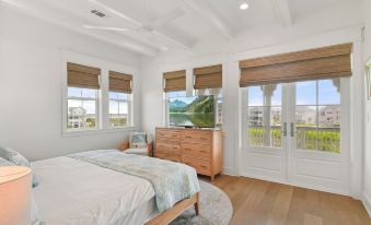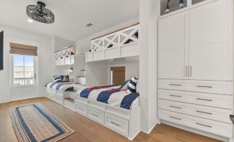 size and 2 twin beds, and an ensuite for the kids. Across from the bunk room is the fourth bedroom with ensuite and king bed. The fifth bedroom has its own private balcony with fantastic views of the ocean and bay, king-size bed, full-size tub and shower. The home is equipped with Wi-Fi. Every bedroom in the house has a TV, and access to the outside deck.