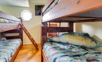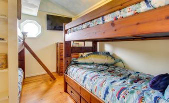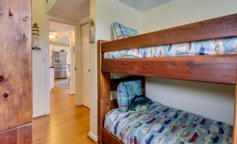 Upstairs, the third bedroom has a sturdy full-over-twin bunk. With three bedrooms, a sofabed, and two full baths, this home sleeps up to 11 guests (six adults) quite comfortably. Up to two family dogs (25 lb weight limit) are also welcome to join you during your stay for an additional nightly fee.