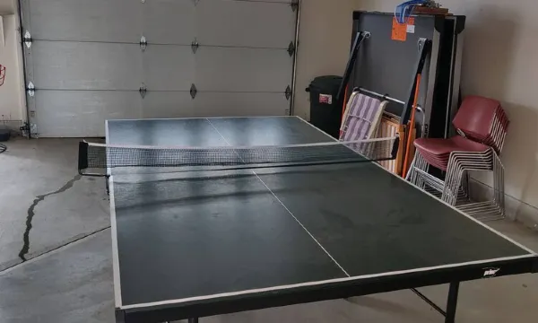 There is a ping-pong table in the garage and a double shot basketball game. Lawn games, fishing gear, golf clubs, beach chairs, and more available in the garage.