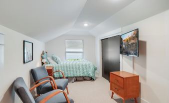Our loft is a cozy, charming space, but please keep in mind the stairs are original to the home. They’re a bit steeper than modern stairs, though perfectly safe and built to the standards of their time. The landing also has a small step down. We encourage extra care when going up or down, and if you have little ones, a baby gate or close supervision is recommended.