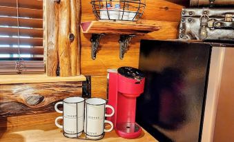 The cabin was well-appointed and clean. In fact, there were even more amenities in the room than we were expecting. The check-in process was very easy, which was a relief since we arrived on a rainy night. I would definitely recommend this property to someone who wants to stay near downtown Hot Springs but wants to have a bit more peace (and a campfire).