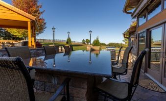 Our expansive patio, adorned with a built-in granite table, provides the perfect setting for al fresco dining and enjoying the breathtaking views. Gather around the firepit in our gazebo, sharing stories and laughter under the stars.