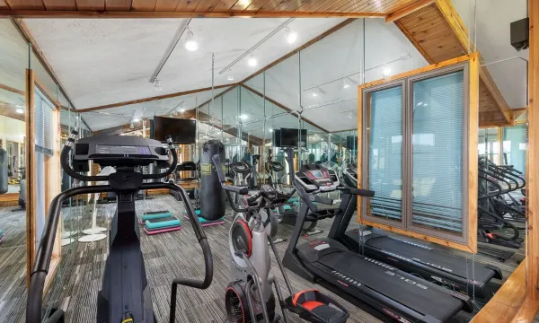 Immerse yourself in tranquility as you plunge into our private indoor heated pool, surrounded by soothing ambiance. Rejuvenate in our sauna, let your muscles melt away in our outdoor hot tub, or invigorate your body in our well-equipped gym.