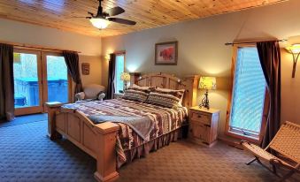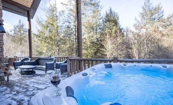 It's authentic lodge experience boasts beautifully decorated, open concept spaces and an exceptional outdoor living area. Picture yourself relaxing on the massive 2 sided deck enjoying the warmth and smell of burning wood by the covered 31' stacked stone fireplace, or soaking in the bubbling hot tub. Grill and dine outdoors to the sound of a rustling forest while you gaze at the surrounding beauty and wildlife. You can be assured that night time is a magical at The Lazy Bear. The stars are so close and so bright you will feel as if you could reach up and grab one!