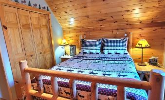 *UPPER LEVEL-Two quiet and cozy bedrooms with queen log beds, plush pillow top mattresses and shared full bath.
