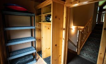 There is a second refrigerator in the laundry room on this level as well as a walk out to the forest, fire pit area and deck swings.
