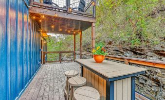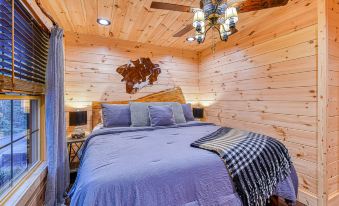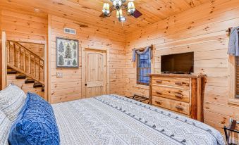 there are three king rooms with handmade furnishings and two bathrooms outfitted with hand-carved vanities harvested from local hardwoods, plus natural boulder vessel sinks. the fully-equipped kitchen has all the stainless steel appliances the family chef needs and the quaint dining area can seat six around a beautiful handcrafted rainbow poplar table. enjoy ample outdoor seating from the multiple decks and a covered creekside space warmly lit with garden lights and facing noisy baskins creek, with a majestic slate wall in the back. this home features flatscreen smart tvs, a firepit, high-speed internet and free wifi, cable, and some of the best covered creekside outdoor spaces found in the smokies! and the private washer and dryer will knock out all your dirty duds, so you can afford to pack light for your trip! whatever you are looking for in your next vacation, you'll find it here with the blue spruce.