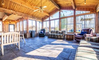 Large tables and ample seating for all your activities. Main Floor features a fire place in the living room which opens into a kitchen/dining area. The kitchen is WELL STOCKED with all of your cooking needs - all you need to bring is the food! There is a gas grill on the back patio & fire pit in the yard (some firewood will be provided with the option to purchase more). Multiple outdoor and indoor seating areas provide privacy for those who want it and plenty of space for groups to gather.