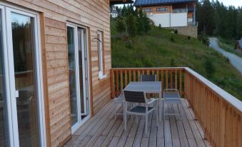 The house is located in the midst of the Nockberge at 1600m above sea level and offers a magnificent view of the surrounding mountain landscape. On a clear day you can look from the balcony or terrace to Italy and Slovenia. Both in summer and in winter, the house is the perfect starting point for day trips. In summer, hiking or mountain bike tours can be started directly from the front door. For winter sports enthusiasts, the resort offers a small but fine family ski area with ski and toboggan runs, cross-country trails or groomed winter hiking trails. By car in about 20 minutes in Bad Kleinkirchheim or the Turracher Höhe, both of which are among the best ski resorts in Carinthia.