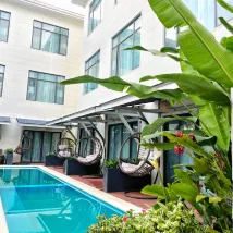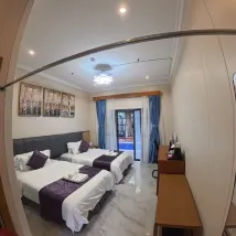 Ich habe in einem Deluxe-Zweibettzimmer mit Gartenblick übernachtet, aber es hatte weder einen Fernseher noch einen Kühlschrank. Anscheinend haben nur die Zimmer am Pool im ersten Stock Fernseher und Kühlschränke. Damit es nicht zu einer Überschwemmung kommt, ist der Duschraum mit einer Tür ausgestattet. Shampoo und Körperseife werden bereitgestellt, Spülung jedoch nicht. Bringen Sie daher bei Bedarf bitte Ihre eigene mit. Eine tägliche Zimmerreinigung erfolgt nicht, Handtücher werden jedoch jederzeit gewechselt. Das Hotel ist klein und nicht neu, aber gut gepflegt.