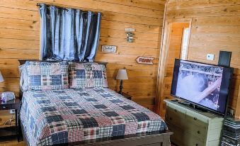Sadly the cabin was not very clean or comfortable. We found dead bugs covering the loft beds like it had not bee cleaned in awhile. We had to go to Walmart and get a blow up mattress for our child. The A/c output vents had mold. The queen bed was very old and noisy and you can feel the springs. There is a meat processing plant or cows that put a foul odor in the air. There were times I couldnt enjoy sitting on the porch because the smell was so bad. However, the lake had great fishing and we caught 5 fish. I hope the place gets cleaned up.