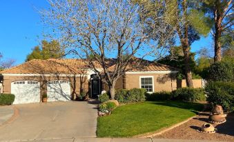 At this rental you feel like you're in an oasis. The AZ temperatures can be hot but you feel chill and relaxed staying here. The backyard with the swimming pool, lovely trees, plants and flowers and firepit make an environment you don't want to leave. The homeowner was very helpful and always available.