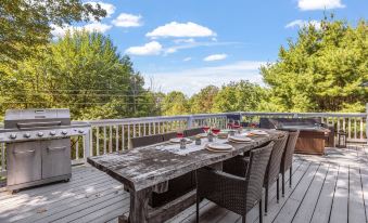 Just outside the family room is a vast wraparound deck ready for your whole family to be entertained. The deck overlooks the treetops with a clear view of Gunstock, allowing you to appreciate the breathtaking views from this exclusive estate. There is a massive driftwood table and all outdoor furniture you need to enjoy the majestic mountain sunsets. There are 3 grills with full propane tanks ready for your grill master to cook up your favorite meals.