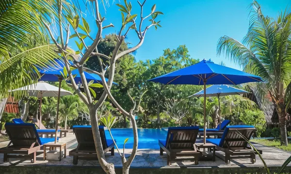 This resort on the north of Gili Air is literally on the beach, the crew is friendly and welcoming, the bungalows are simple but confortable. You can rent a bike or book some activities or trip around the islands Gili. If we'll come back we want to stay here.