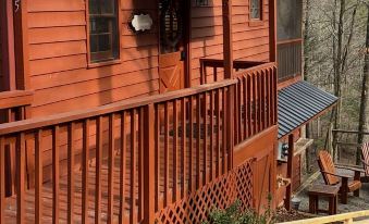 Our host was so accommodating and the cabin was beautiful also well stocked. We went to The Top Roof to eat and the fighting town tavern in blue ridge our husbands golf 2 days, we all enjoyed our stay.