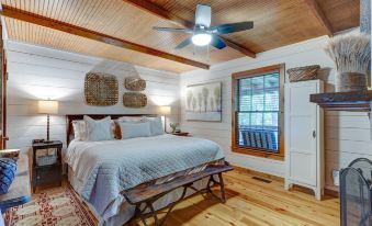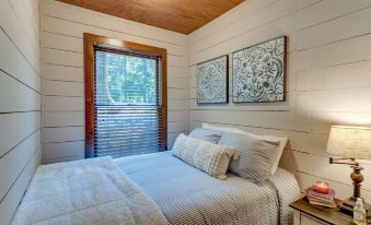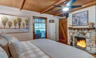 Inside, the cabin has a spacious open layout with modern farmhouse decor, two cozy wood-burning fireplaces and a newly renovated chef's kitchen with all the amenities you'll need. Fully stocked with staples, such as coffee, tea, spices and condiments, along with other goodies just for you. There is a bar area with mixers, barware, cocktail shaker, and everything you need to make that perfect beverage. Just byob.