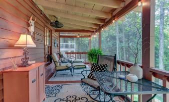 Relax on our 32 foot screened porch overlooking the 11th Tee. Sink into comfortable seating, put your feet up and enjoy your coffee in the morning listening to the birds sing. In the evening, watch deer and wild turkey from the back deck, enjoying your favorite beverage. We’ve just installed a wall hung radiant heater on the deck to extend your outdoor enjoyment in cooler weather.