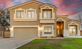 This 4,000+ sq. ft. luxury escape is built for fun & relaxation! Featuring 6 bedrooms, 9 beds, and 3.5 baths, enjoy a massive game room (billiards, poker, arcade, TV), private gym, and a resort-style backyard with a diving pool, hot tub, firepit, putting green, BBQ, turf lawn, & 3-on-3 basketball court. Minutes from State Farm Stadium & Westgate! Book now for an unforgettable stay!