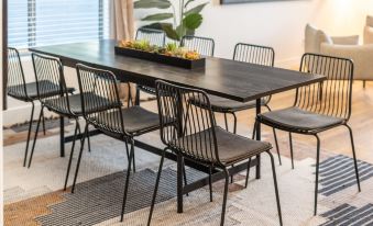 The fully stocked kitchen is a chef’s dream, featuring modern appliances, ample counter space, and stylish finishes—perfect for preparing meals or entertaining. Whether you’re cooking up a feast or ordering in, this space is designed to bring everyone together.