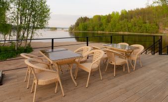 It features the best Karelian and European cuisine restaurant with stunning views of Lake Ladoga, a private beach, massage treatments, children's animation and play areas.