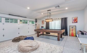 Welcome to our newly remodeled, stylish farmhouse retreat—perfect for relaxation and entertainment. As you walk through the front door, you’re greeted by a stunning view of the backyard oasis with sparkling saltwater pool. The open-concept living room seamlessly connects to the kitchen and dining area, creating a spacious and inviting atmosphere. The oversized covered deck makes it for the perfect outdoor living with cozy couch, a large TV, Traeger grill and a pass-through window with an outdoor bar—ideal for enjoying cocktails in the fresh air. The chef’s kitchen boasts a huge island, high-end appliances, and all the essentials to create unforgettable meals. For indoor entertainment, don’t miss the game room, which features a 9-foot pool table, ping-pong, Xbox, large TV, and more! Whether you’re challenging friends or enjoying a family game night, there’s something for everyone. With a sparkling pool, stunning outdoor living area, and a prime location at the end of a quiet street with ample parking, this farmhouse retreat has everything you need for a perfect stay!About pets:Pets allowed: dogs and cats less than 50 lbs per pet (limit 2 pets total).About checkOut:Check out before 11:00 AM.About children:Children allowed: ages 0-17.About checkIn:Check in after 3:00 PM.About smoking:Smoking is not permitted.About minBookingAge:Minimum age to rent: 23.About events:No events allowed.