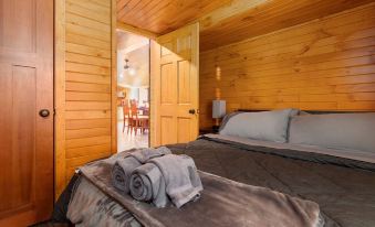 We loved our stay, it was charming, comfortable and a great location, close to traverse and all of our adventure destinations. We made use of the hot tub, outdoor fireplace and the fire pit. It is on a busy road but its set back enough and the landscape is perfect to disguise. We also used the row boat and had a blast! Thanks so much!
