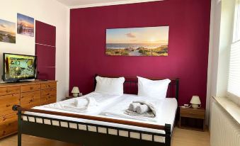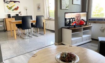 Eine Wohnung zum wohlfühlen, mit allem, was man so braucht. Geschmackvoll eingerichtet, bequeme Betten und eine gut ausgestattete Küche. Der kleine eigene und eingezäunte Garten war ganz prima für unseren kleinen alten Hund. Die Sitzmöglichkeiten an den Sielterrassen sind der Hammer.