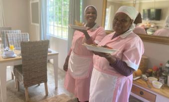 The cottage comprises a fully equipped kitchen, dining area and lounge which guests can share. The kitchen is equipped for self-catering with a fridge, an oven and stove, a microwave and dishwasher, and the lounge is equipped with a TV with full DStv package and Netflix. Free Wi-Fi is available. There is also a washing machine and tumble dryer available.