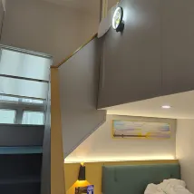 There is an upstairs to the reception from the road ground. The room setup is compact.